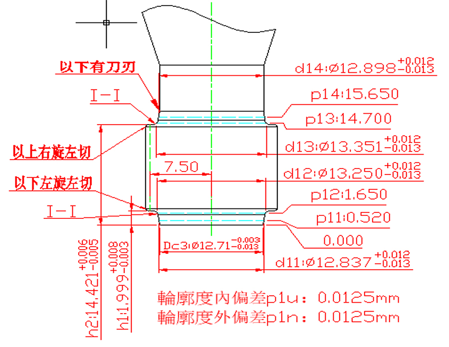 轮廓度內偏差p1u:0.0125mm
